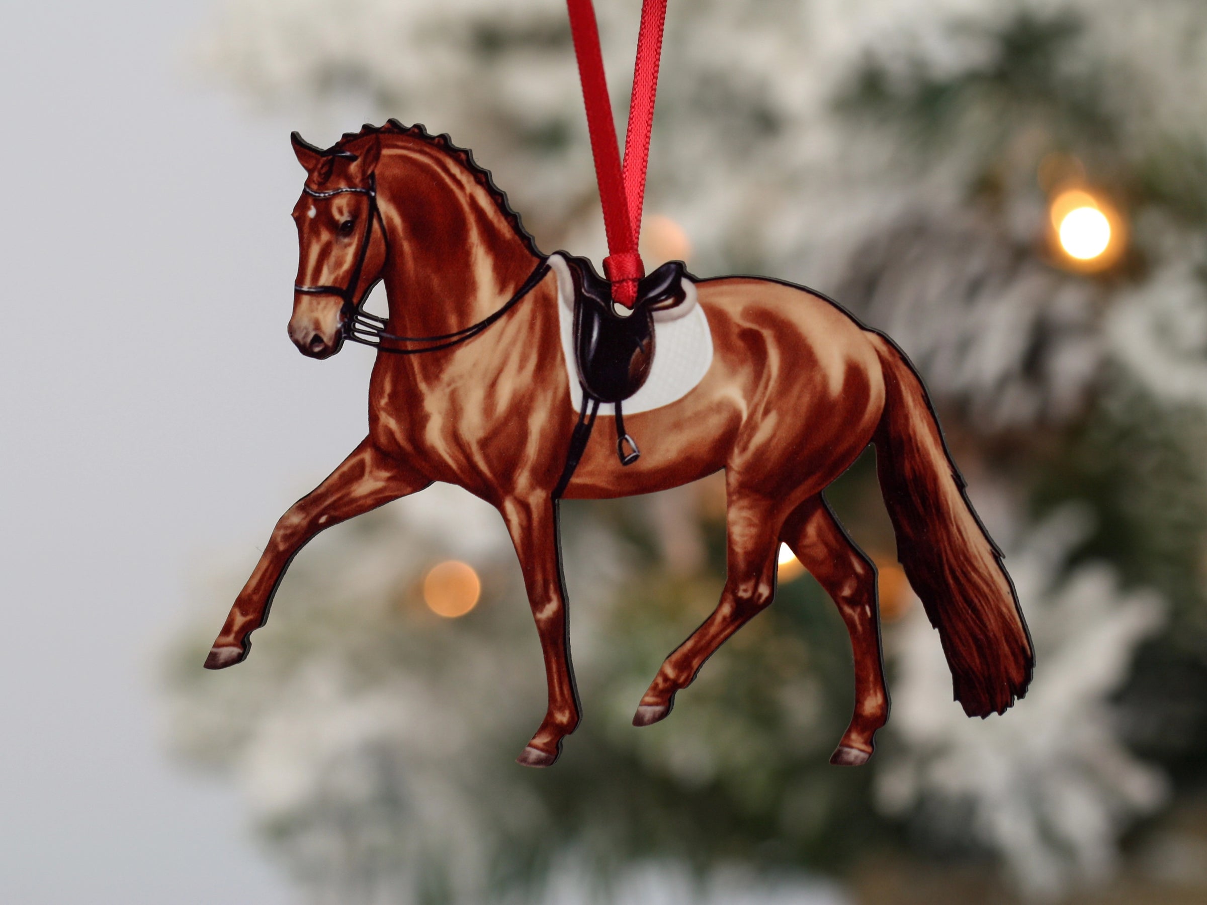 Dressage Horse Ornament - Chestnut Half Pass Dressage II